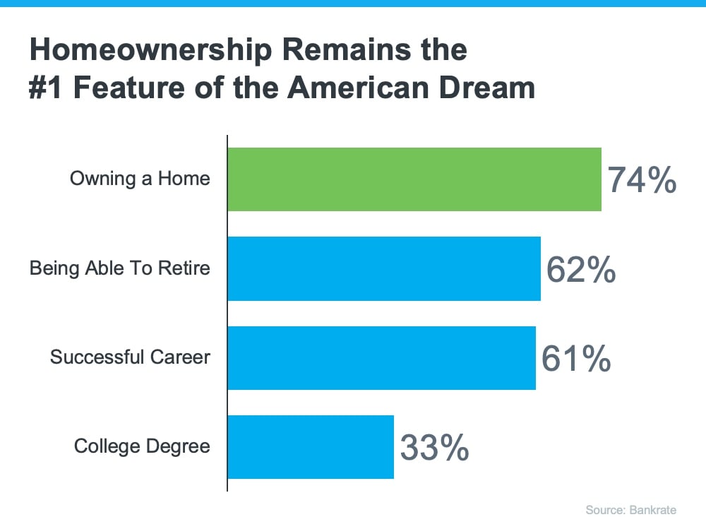 A recent survey from Bankrate asked respondents which achievements they feel most embody the American Dream. The responses prove owning a home is still important to so many Americans today (see graph below):