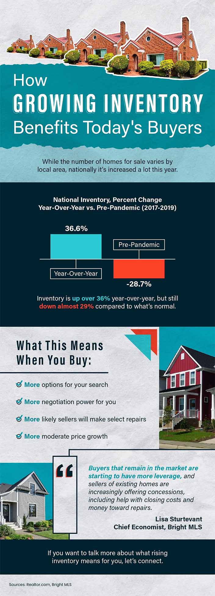 While the number of homes for sale varies by local area, nationally, we’re up over 36% year-over-year, but still down almost 29% compared to what’s normal. Here’s what that means when you buy: more options for your search, more negotiation power for you, it’s more likely sellers will make select repairs, and more moderate price growth.