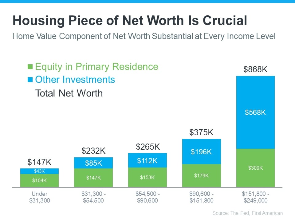 The green segment in each bar represents how much of a homeowner's net worth comes from their home equity. Based on this data, it's clear no matter what your income level is, owning a home can really boost your wealth.