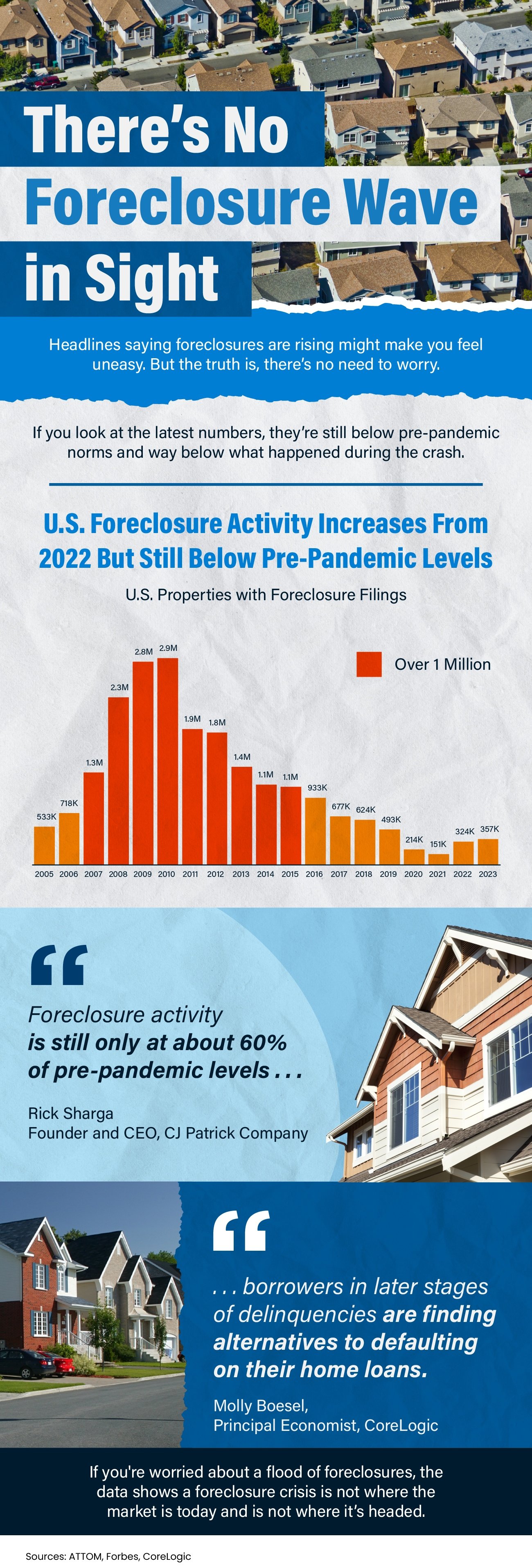 Headlines saying foreclosures are rising might make you feel uneasy. But the truth is, there’s no need to worry. If you look at the latest numbers, they’re still below pre-pandemic norms and way below what happened during the crash. If you're worried about a flood of foreclosures, the data shows a foreclosure crisis is not where the market is today and is not where it’s headed.