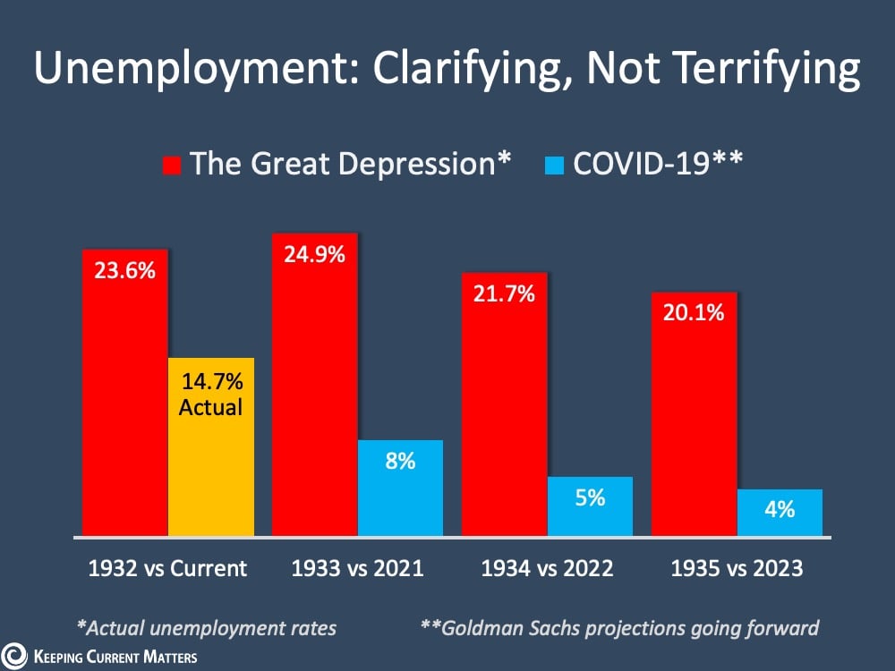 Here is a graph comparing current unemployment numbers (actual and projected) to those during the Great Depression: