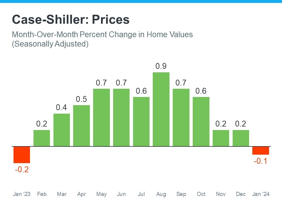 What do you notice when you look at this graph? It depends on what color you’re more drawn to. If you look at the green, you’ll see home prices rose for the majority of the past year. But, if you’re drawn to the red, you may only focus on the two slight declines. This is what a lot of media coverage does. Since negative news sells, drawing attention to these slight dips happens often. But that loses sight of the bigger picture. Here’s what this data really says: there’s a lot more green in that graph than red. And even for the two red bars, they’re so slight, they’re practically flat. If you look at the year as a whole, home prices still rose overall. It’s perfectly normal in the housing market for home price growth to slow down in the winter. That’s because fewer people move during the holidays and at the start of the year, so there’s not as much upward pressure on home prices during that time. That’s why, even the green bars toward the end of the year show smaller price gains.