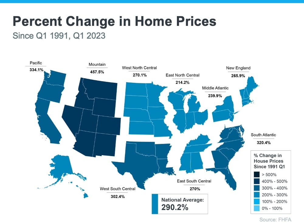 The second map shows, nationwide, home prices appreciated by an average of over 290% over a roughly 30-year span. This nationwide average tells you the typical homeowner who bought a house 30 years ago saw their home almost triple in value over that time. That’s a key factor in why so many homeowners who bought their homes years ago are still happy with their decision.